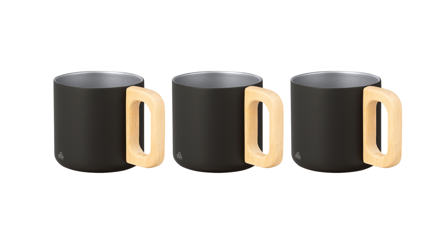Our new Double Walled Coffee Mug is made from recycled stainless steel so it is very durable and keeps your drinks warm! The wooden handle elevates the comfortability of this mug and adds a stylish flair! Experience the perfect blend of style and functionality – grab your insulated mug today and enjoy every sip in comfort!